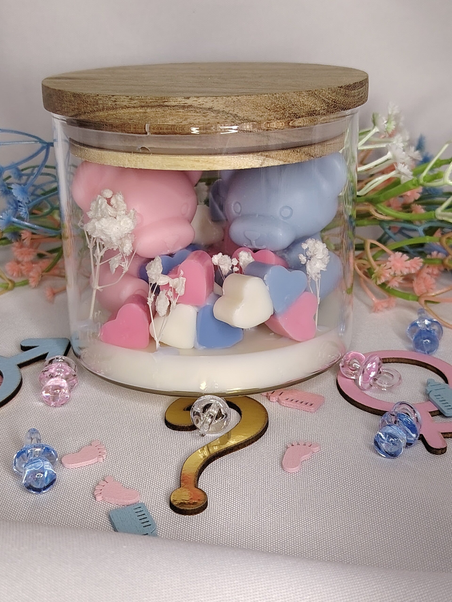 🍼 Amphore en verre avec bouchon en bois étanche, idéal pour décorer vos tables, créer un souvenir de la naissance de votre bébé, décors baptême ou même en cadeau de naissance.